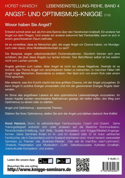 Horst Hanisch, Bonn, ist selbstständiger Fachbuchautor, Coach und Dozent. Seine Trainingstätigkeit erstreckt sich unter anderem auf die Bereiche Kommunikation, Persönlichkeits-Entfaltung, Soft Skills, Soziale Kompetenz und Knigge/Etikette/Umgangsformen. Seine Seminare finden im In- und Ausland statt. Er ist Autor zahlreicher Fachbücher, die in Deutschland und im Ausland erschienen sind. Horst Hanisch veranstaltet Seminare zu Themen wie Business-Etikette, Das wie ist man/frau was?-Lehrmenü, Rhetorik, Präsentation, Moderation, Outfit, Selbstbewusstes Auftreten, Smalltalk, Interkulturelle Kompetenz und andere.