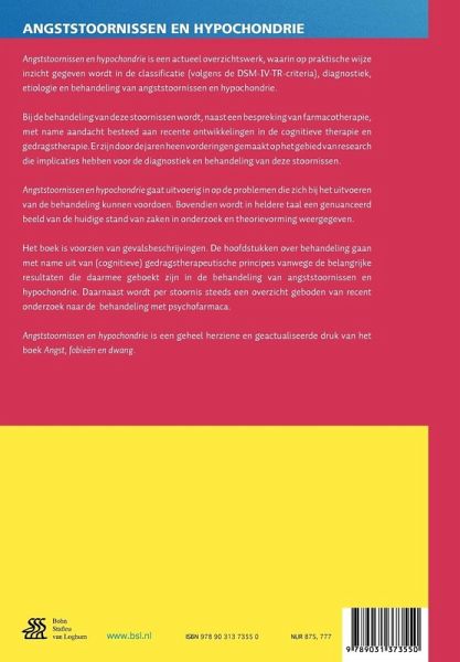 Angststoornissen en hypochondrie is een actueel overzichtswerk, waarin op praktische wijze inzicht gegeven wordt in de classificatie (volgens de DSM-IV-TR-criteria), diagnostiek, etiologie en behandeling van angststoornissen en hypochondrie.Bij de behandeling van deze stoornissen wordt, naast een bespreking van farmacotherapie, met name aandacht besteed aan recente ontwikkelingen in de cognitieve therapie en gedragstherapie. Er zijn door de jaren heen vorderingen gemaakt op het gebied van research die implicaties hebben voor de diagnostiek en behandeling van deze stoornissen.Angststoornissen en hypochondrie gaat uitvoerig in op de problemen die zich bij het uitvoeren van de behandeling kunnen voordoen. Bovendien wordt in heldere taal een genuanceerd beeld van de huidige stand van zaken in onderzoek en theorievorming weergegeven.Het boek is voorzien van gevalsbeschrijvingen. De hoofdstukken over behandeling gaan met name uit van (cognitieve) gedragstherapeutische principes vanwegede belangrijke resultaten die daarmee geboekt zijn in de behandeling van angststoornissen en hypochondrie. Daarnaast wordt per stoornis steeds een overzicht geboden van recent onderzoek naar de behandeling met psychofarmaca.Angststoornissen en hypochondrie is een geheel herziene en geactualiseerde druk van het boek Angst, fobieën en dwang. Angststoornissen en hypochondrie is bedoeld voor psychologen, psychiaters, huisartsen, maatschappelijk werkenden en opleidingen voor deze beroepen.