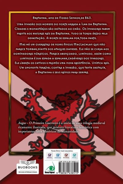 Bretanha, ano de Nosso Senhor de 863. Cidades e monastérios são deitados ao chão. Os invasores fazem frente aos maiores reis da Bretanha, tudo se torna árido pela devastação. A morte se espalha por toda parte. Mas há um guerreiro de nome Angus MacLachlan, que não parece tombar diante dos ataques daneses. Ele não se curva aos dominadores nórdicos. Parece abençoado, luminoso, assim como luminosa é sua espada a espalhar cadáveres dos invasores. Ele parece libertar os cativos e propor uma nova resistência. Ele parece unificar reis. Um oponente terrível contra a invasão, que tenta destruir a Bretanha e seus reinos para sempre. Angus - O Primeiro Guerreiro é o início de uma trilogia medieval ricamente ilustrada, que mistura literatura fantástica com importantes fatos históricos da humanidade.
