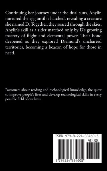 Continuing her journey under the dual suns, Anylin nurtured the egg until it hatched, revealing a creature she named D. Together, they soared through the skies, Anylin's skill as a rider matched only by D's growing mastery of flight and elemental power. Their bond deepened as they explored Diamond's uncharted territories, becoming a beacon of hope for those in need.