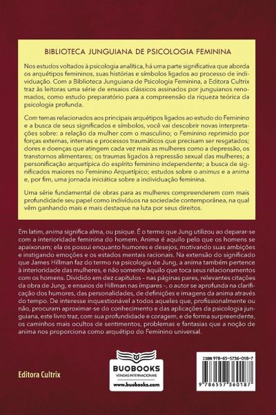 Em latim, anima significa alma, ou psique. É o termo que Jung utilizou ao deparar-se com a interioridade feminina do homem. Anima é aquilo pelo que os homens se apaixonam; ela os possui enquanto humores e desejos, motivando suas ambições e instigando emoções e os estados mentais racionais. Na extensão do significado que James Hillman faz do termo na psicologia de Jung, a anima também pertence à interioridade das mulheres, e não somente àquilo que toca seus relacionamentos com os homens. Nesta obra, o autor se aprofunda na clarificação dos humores, das personalidades, de definições e imagens da anima através do tempo trazendo com sua profundidade e coragem, e de forma surpreendente, os caminhos mais ocultos de sentimentos, problemas e fantasias que a noção de anima nos proporciona como arquétipo do Feminino universal.