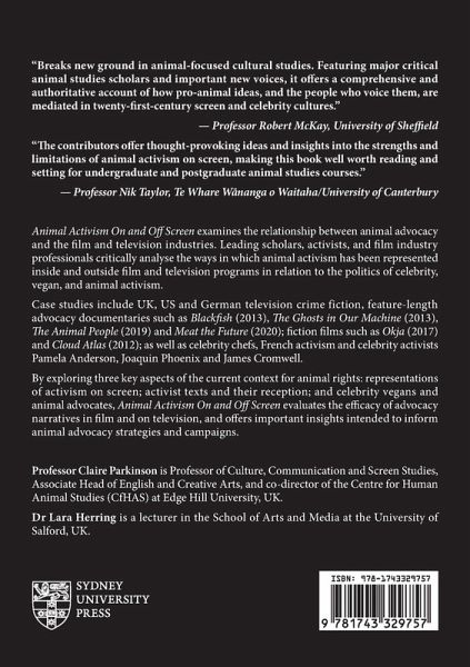 Animal Activism On and Off Screen examines the relationship between animal advocacy and the film and television industries. Leading scholars, activists, and film industry professionals critically analyse the ways in which animal activism has been represented inside and outside film and television programs in relation to the politics of celebrity, vegan, and animal activism. Case studies include UK, US, and German television crime fiction, feature-length advocacy documentaries such as Blackfish (2013), The Ghosts in Our Machine (2013), The Animal People (2019) and Meat the Future (2020); fiction films such as Okja (2017) and Cloud Atlas (2012); as well as celebrity chefs, French activism and celebrity activists Pamela Anderson, Joaquin Phoenix and James Cromwell. By exploring three key aspects of the current context for animal rights: representations of activism on screen; activist texts and their reception; and celebrity vegans and animal advocates, Animal Activism On and Off Screen evaluates the efficacy of advocacy narratives in film and on television, and offers important insights intended to inform animal advocacy strategies and campaigns.