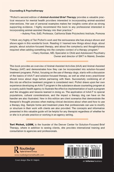 Dolan, Foreword. The Basics of Animal Assisted Activities/Therapy (AAA/T). The Solution-Focused Basics. What Every Therapist Needs to Know About Dogs Before Partnering with One in AAA/T. How to Create a Successful AAA/T Program for Your Setting. Using AAA in Solution-Focused Treatment Settings. Using a Therapy Dog in Solution-Focused Treatment Sessions. Applying AAA/T to Special Populations. Using Animal Assisted Activities with Employees and Agencies. The Gift of the Imperfect Dog. Unexpected Lessons Learned.