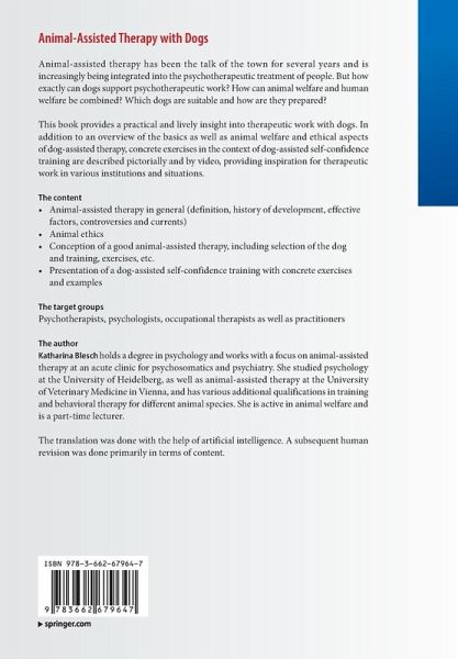 This book provides a practical and lively insight into therapeutic work with dogs. In addition to an overview of the basics as well as animal welfare and ethical aspects of dog-assisted therapy, concrete exercises in the context of dog-assisted self-confidence training are described pictorially and by video, providing inspiration for therapeutic work in various institutions and situations.