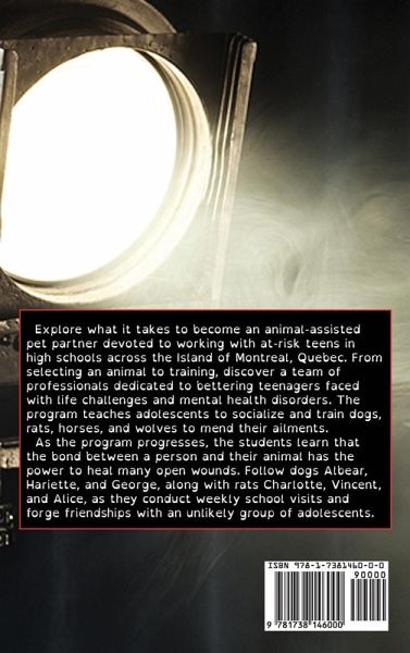 Explore what it takes to become an animal-assisted pet partner devoted to working with at-risk teens in high schools across the Island of Montreal, Quebec. From selecting an animal to training, discover a team of professionals dedicated to bettering teenagers faced with life challenges and mental health disorders. The program teaches adolescents to socialize and train dogs, rats, horses, and wolves to mend their ailments. As the program progresses, the students learn that the bond between a person and their animal has the power to heal many open wounds. Follow dogs Albear, Hariette, and George, along with rats Charlotte, Vincent, and Alice, as they conduct weekly school visits and forge friendships with an unlikely group of adolescents.
