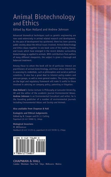 Advanced biomedical techniques such as genetic engineering are now used extensively in animal related research and development. As the pace of development has quickened, there has been growing public anxiety about the ethical issues involved. Animal Biotechnology and Ethics draws together in one book some of the leading themes and issues which have emerged in the recent debates surrounding biotechnology as applied to animals. With contributions from authors of many different viewpoints, the subject is given a thorough and balanced treatment.