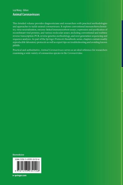 "This book is unique in presenting current technologies available for detection of animal coronaviruses and research especially for diagnostic methodologies. The intention is to provide specific protocols and methods for individual coronaviruses, both conventional approaches and state-of-the art technologies. ... The primary audience is diagnosticians, interns, and residents who work in the laboratory, but graduate students and researchers will benefit as well. ... The book is essential for researchers and diagnosticians in veterinary virology." (Dongwan Yoo, Doody's Book Reviews, June, 2016)