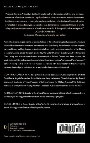 Animal law is a growing discipline, as is animal ethics. In this wide-ranging book, scholars from around the world address the intersections between the two. A project of the Oxford Centre for Animal Ethics, this collection focuses on pressing moral issues and how law can protect animals from cruelty and abuse.