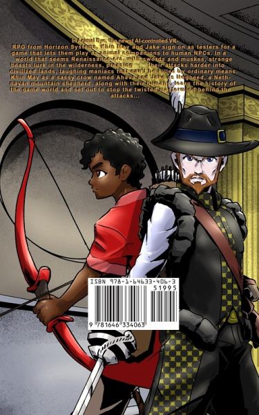 In Animal Eye, the newest AI-controlled VR-RPG from Horizon Systems, Khin May and Jake sign on as testers for a game that lets them play as animal companions to human NPCs. In a world that seems Renaissance-era, with swords and muskets, strange beasts lurk in the wilderness, pressing their attacks harder into civilized lands, laughing maniacs that can't be killed by ordinary means. Khin May as a sassy crow named Ahva and Jake as Nagheed, a Nethanyan mountain shepherd, along with their humans, learn the history of the game world and set out to stop the twisted mastermind behind the attacks...