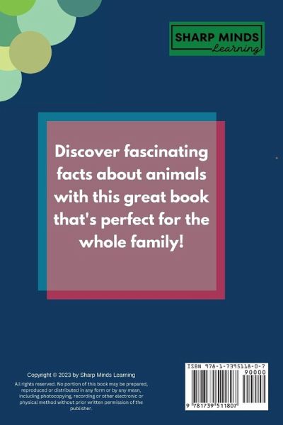 "Animal Facts for Sharp Minds" is the ultimate guide for animal enthusiasts looking to expand their knowledge. This book is filled with fascinating facts and captivating insights that will leave readers amazed. This book covers everything from the intelligence of dolphins to the hunting skills of lions. The easy-to-read format and engaging content make it perfect for both adults and children. Whether you're a nature lover or just looking for a fun read, "Animal Facts for Sharp Minds" will delight and educate you. Place your today and discover the fantastic world of animals like never before! Guaranteed to surprise and amaze even the sharpest minds. This book is a must-read for anyone who loves to learn about animals. Inside the Book:Discover incredible facts about mammals, birds, reptiles, amphibians, and marine life from all corners of the globe. Unravel the mysteries of the animal kingdom with insights into their adaptive traits and extraordinary capabilities. Encounter the diverse habitats and ecosystems that support a wide array of fascinating species. Delve into lesser-known facts that will leave even seasoned animal enthusiasts in awe. Perfect for readers of all ages, from young animal lovers to lifelong learners seeking a deeper appreciation of the natural world. Stunning colorful photography that brings captivating creatures to life.