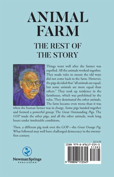 Things went well after the farmer was expelled. All the animals worked together. They made rules to ensure the old ways did not come back to the farm. However, the pigs decided that "all animals are equal, but some animals are more equal than others." They took up residence in the farmhouse, which was prohibited by the rules. They dominated the other animals. The farm became even worse than it was when the human farmer was in charge. Some pigs banded together and formed a powerful group: The Great Outstanding Pigs. The GOP made the other pigs, and all the other animals, work long hours under intolerable conditions. Then, a different pig took over the GOP--the Great Orange Pig. What followed may well have challenged democracy in the twenty-first century.