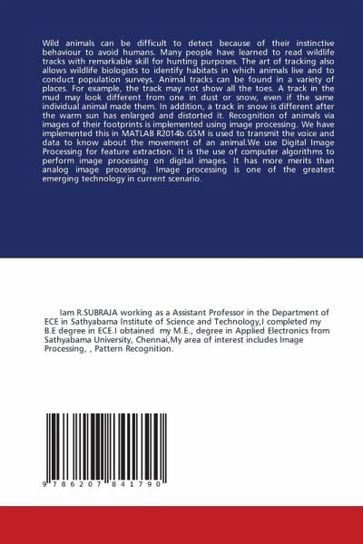 Wild animals can be difficult to detect because of their instinctive behaviour to avoid humans. Many people have learned to read wildlife tracks with remarkable skill for hunting purposes. The art of tracking also allows wildlife biologists to identify habitats in which animals live and to conduct population surveys. Animal tracks can be found in a variety of places. For example, the track may not show all the toes. A track in the mud may look different from one in dust or snow, even if the same individual animal made them. In addition, a track in snow is different after the warm sun has enlarged and distorted it. Recognition of animals via images of their footprints is implemented using image processing. We have implemented this in MATLAB R2014b.GSM is used to transmit the voice and data to know about the movement of an animal.We use Digital Image Processing for feature extraction. It is the use of computer algorithms to perform image processing on digital images. It has more merits than analog image processing. Image processing is one of the greatest emerging technology in current scenario.