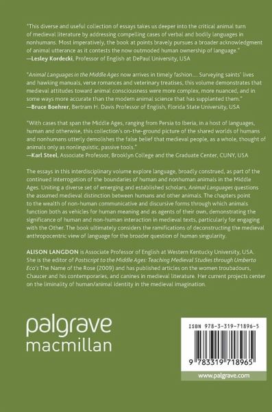 "The twelve essays collected in this volume comprise a varied and stimulating contribution to the thriving field of scholarly discourse on medieval 'animalities' ... . Their general focus is on medieval representations of animal utterances and other non-verbal modes of communication in order to interrogate medieval attitudes to the supposed dichotomy between human and non-human animals." (David Scott-Macnab, Modern Language Review, Vol. 114 (3), July, 2019)