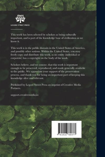 This work has been selected by scholars as being culturally important, and is part of the knowledge base of civilization as we know it. This work is in the "public domain in the United States of America, and possibly other nations. Within the United States, you may freely copy and distribute this work, as no entity (individual or corporate) has a copyright on the body of the work. Scholars believe, and we concur, that this work is important enough to be preserved, reproduced, and made generally available to the public. We appreciate your support of the preservation process, and thank you for…mehr