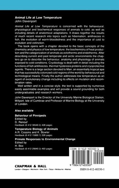 This new book provides a highly readable account of the ways in which animals of all types cope with a cold environment - Nature; a readable, interesting and useful guide.... thoroughly referenced, well illustrated... the breadth of coverage in this section is appealing. Part Two describing Behaviour, Anatomy and Physiology was thorough and contains a well written section on the anatomy and physiology of endotherms. I was particularly impressed with the extensive section covering sleep, torpor and hibernation... the book as a whole is one which thermal physiologists and others interested in the field will find of great general utility - American Zoological; ...can be recommended to any biologist interested in animal life at low temperature, adn especially to those interested in animal behavior - Ethology