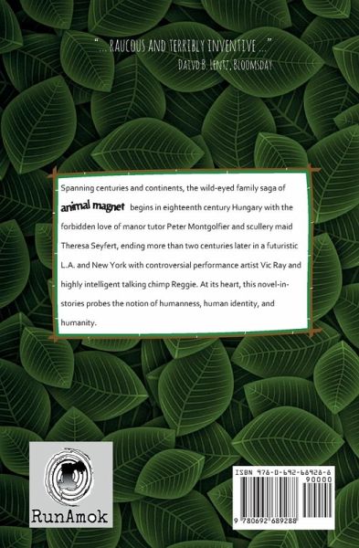 Told from numerous and at times oblique perspectives, while using various literary forms and styles, this unusual family saga begins with the forbidden love of a manor tutor and lunatic scullery maid. The illegitimate line begun by Péter Montgolfier and Theresa Seyfert is, from beginning to end, beset by hardship, scandal, and shame. Spanning centuries and continents, the story jumps generationally if erratically down the family tree, beginning in the eighteenth century in the Kingdom of Hungary with Péter and Theresa and ending more than two centuries later in a futuristic L.A. with controversial performance artist Vic Ray. Along the way, the reader meets an unforgettable cast of characters: Ernst Seyfert, footman and fratricide; Georges d’Aubigne, suicidal playwright and républicain; Joseph Vasser, bigamist and author of the Bible II; and Jesus Ramos, the Dog-faced Boy; to name a few. Ultimately, Animal Magnet probes the notion of humanness, human identity, and humanity. With unflinching honesty, this novel-in-stories poses the disconcerting question, "Are we more human than animal, or more animal than human?"