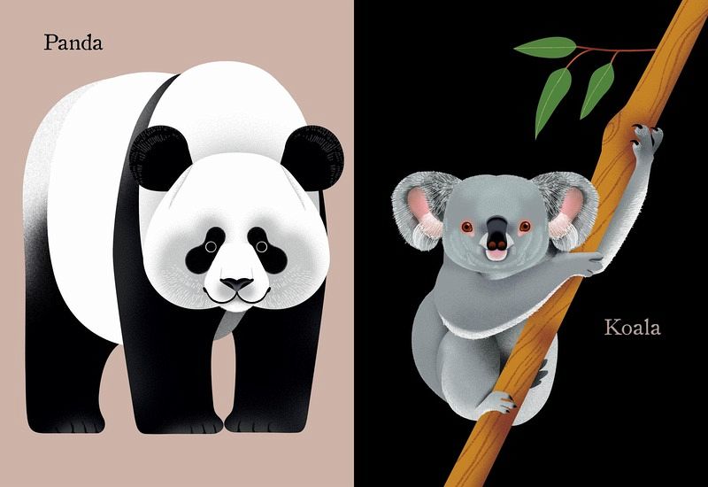 Fabulous, large-format, 34-page, board book, full of bold, colourful, and appealing animal portraits, from mice to elephants, pandas to reindeer. Captivating and beautiful.