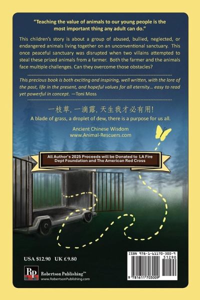 "Teaching the value of animals to our young people is the most important thing any adult can do." Animal Rescuers is a children's story about a group of abused, bullied, neglected, or endangered animals living together on an unconventional sanctuary. This once peaceful sanctuary was disrupted when two villains attempted to steal these prized animals from a farmer. Both the farmer and the animals face multiple challenges. Can they overcome those obstacles? This precious book is both exciting and inspiring, well written, with the lore of the past, life in the present, and hopeful values for all eternity...easy to read yet powerful in concept. -Toni Moss