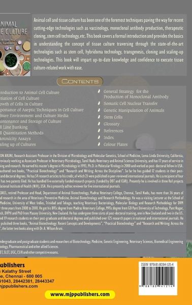 Animal cell and tissue culture has been one of the foremost techniques paving the way for recentcutting-edge technologies such as vaccinology, monoclonal antibody production, therapeuticcloning, stem cell technology, etc. This book covers a formal introduction and provides the basicsin understanding the concept of tissue culture traversing through the state-of-the-arttechnologies such as stem cell, hybridoma technology, transgenesis, cloning and scaling-up technologies. This book will impart up-