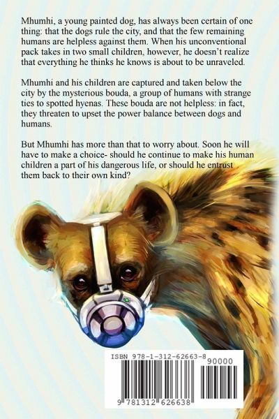 Mhumhi, a young painted dog, has always been certain of one thing: that the dogs rule the city, and that the few remaining humans are helpless against them. When his unconventional pack takes in two small children, however, he doesn't realize that everything he thinks he knows is about to be unraveled. Mhumhi and his children are captured and taken below the city by the mysterious bouda, a group of humans with strange ties to spotted hyenas. These humans are not helpless: in fact, they threaten to upset the balance between dogs and humans. But Mhumhi has more than that to worry about. Soon he will have to make a choice- should he continue to make his human children a part of his dangerous life, or should he entrust them back to their own kind? He'll have to decide fast, because as the city's food supply dwindles, darker machinations are beginning to stir, and to escape them Mhumhi and his pack may have to go beyond the city for the first time.