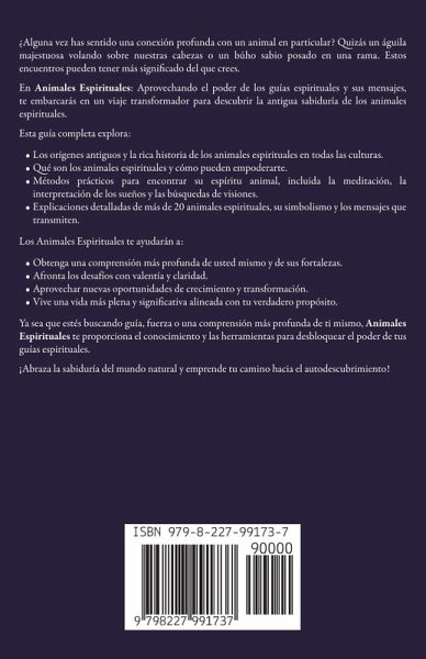 ¿Alguna vez has sentido una conexión profunda con un animal en particular? Quizás un águila majestuosa volando sobre nuestras cabezas o un búho sabio posado en una rama. Estos encuentros pueden tener más significado del que crees. En Animales Espirituales: Aprovechando el poder de los guías espirituales y sus mensajes, te embarcarás en un viaje transformador para descubrir la antigua sabiduría de los animales espirituales. Esta guía completa explora: Los orígenes antiguos y la rica historia de los animales espirituales en todas las culturas. Qué son los animales espirituales y cómo pueden empoderarte. Métodos prácticos para encontrar su espíritu animal, incluida la meditación, la interpretación de los sueños y las búsquedas de visiones. Explicaciones detalladas de más de 20 animales espirituales, su simbolismo y los mensajes que transmiten. Los Animales Espirituales te ayudarán a: Obtenga una comprensión más profunda de usted mismo y de sus fortalezas. Afronta los desafíos con valentía y claridad. Aprovechar nuevas oportunidades de crecimiento y transformación. Vive una vida más plena y significativa alineada con tu verdadero propósito. Ya sea que estés buscando guía, fuerza o una comprensión más profunda de ti mismo, Animales Espirituales te proporciona el conocimiento y las herramientas para desbloquear el poder de tus guías espirituales. ¡Abraza la sabiduría del mundo natural y emprende tu camino hacia el autodescubrimiento!