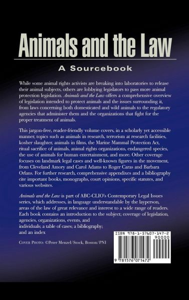 Offers a comprehensive overview of the legislation and legal issues surrounding animals. Written by Jordan Curnutt, Animals and the Law covers everything from the Silver Spring monkeys, subjects in the first U.S. lab raided by police where criminal charges were filed against a scientist conducting federally funded research, to sex with animals. Among the subjects reviewed are kosher and Halal food restrictions, mad cow disease and cattle cannibalism, animals in laboratories, and as entertainment-in circuses, zoos, rodeos, horse racing, cockfighting, and more. Also included are appendixes of animal organizations, cases, statutes and regulations, and an extensive bibliography.