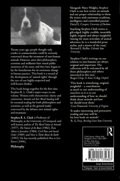 Twenty years ago, people thought only cranks or sentimentalists could be seriously concerned about the treatment of non-human animals. However, since then philosophers, scientists and welfarists have raised public awareness of the issue; and they have begun to lay the foundations for an enormous change in human practice. This book is a record of the development of 'animal rights' through the eyes of one highly-respected and well-known thinker. This book brings together for the first time Stephen R.L. Clark's major essays in one volume. Written with characteristic clarity and persuasion, Animals and Their Moral Standing will be essential reading for both philosophers and scientists, as well as the general reader concerned by the debates over animal rights and treatment.