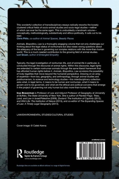 "Life" and "the Living," Law and Norm: A Foreword, Cary Wolfe Introduction: Lively Legalities, Irus Braverman 1. The Regulatory Life of Threatened Species Lists, Irus Braverman 2. Probiotic Legalities: De-domestication and Rewilding Before the Law, Jamie Lorimer 3. Governing Jellyfish: Eco-Security and Planetary "Life" in the Anthropocene, Elizabeth R. Johnson 4. Tracing Bacterial Legalities: The Fluid Ecologies of the European Union's Bathing Water Directive, Christopher Bear 5. Crow Kill, Adam Reed 6. Nonhuman Animal Resistance and the Improprieties of Live Property, Kathryn Gillespie 7. Lively Sanctuaries: A Shabbat of Animal Sacer, Elan Abrell 8. Multispecies Families, Capitalism, and the Law, Eben Kirksey 9. The Conflict of Human and Nonhuman Laws, Richard Janda & Richard Lehun 10. Lively Agency: Law and Life in the Anthropocene, Andreas Philippopoulos-Mihalopoulos Afterword, David Delaney