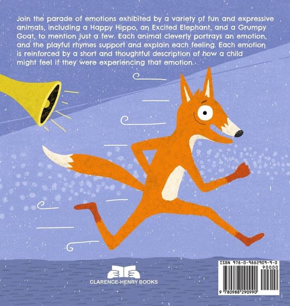 Explore feelings and emotions along with these cheerful animals in this feelings book for kids. Join a parade of emotions exhibited by a variety of fun and expressive animals, including a Happy Hippo, an Excited Elephant, and a Grumpy Goat, to mention just a few. Each animal cleverly portrays an emotion, and the playful rhymes support and explain each feeling. Each emotion is reinforced by a short and thoughtful description of how a child might feel if they were experiencing that emotion. It's also a great way to introduce uncomfortable emotions to kids as the animals bring a lighthearted element to a sometimes challenging subject. Enjoy clever alliterative rhymes Learn emotions through expressive animals Make faces of your own trying to mimic these expressions Memorize each emotion to match each animal character