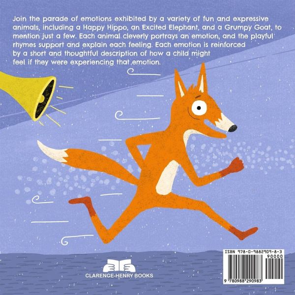 Explore feelings and emotions along with these cheerful animals in this feelings book for kids. Join a parade of emotions exhibited by a variety of fun and expressive animals, including a Happy Hippo, an Excited Elephant, and a Grumpy Goat, to mention just a few. Each animal cleverly portrays an emotion, and the playful rhymes support and explain each feeling. Each emotion is reinforced by a short and thoughtful description of how a child might feel if they were experiencing that emotion. It's also a great way to introduce uncomfortable emotions to kids as the animals bring a lighthearted element to a sometimes challenging subject. Enjoy clever alliterative rhymes Learn emotions through expressive animals Make faces of your own trying to mimic these expressions Memorize each emotion to match each animal character