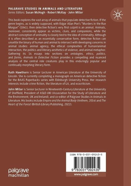 This book explores the vast array of animals that populate detective fiction. If the genre begins, as is widely supposed, with Edgar Allan Poe's "Murders in the Rue Morgue" (1841), then detective fiction's very first culprit is an animal. Animals, moreover, consistently appear as victims, clues, and companions, while the abstract conception of animality is closely tied to the idea of criminality. Although it is often described as an essentially conservative form, detective fiction can unsettle the binary of human and animal to intersect with developing concerns in animal studies: animal agency, the ethical complexities of human/animal interaction, the politics and literary aesthetics of violence, and animal metaphor. Gathering its 14 essays into sections on ontologies, ethics, politics, and forms, Animals in Detective Fiction provides a compelling and nuanced analysis of the central role creatures play in this enduringly popular and continually morphing literary form.