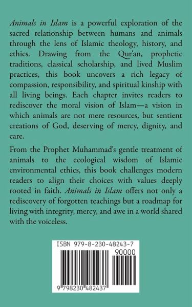 Animals in Islam is a powerful exploration of the sacred relationship between humans and animals through the lens of Islamic theology, history, and ethics. Drawing from the Qur'an, prophetic traditions, classical scholarship, and lived Muslim practices, this book uncovers a rich legacy of compassion, responsibility, and spiritual kinship with all living beings. Each chapter invites readers to rediscover the moral vision of Islam-a vision in which animals are not mere resources, but sentient creations of God, deserving of mercy, dignity, and care. From the Prophet Muhammad's gentle treatment of animals to the ecological wisdom of Islamic environmental ethics, this book challenges modern readers to align their choices with values deeply rooted in faith. Animals in Islam offers not only a rediscovery of forgotten teachings but a roadmap for living with integrity, mercy, and awe in a world shared with the voiceless.