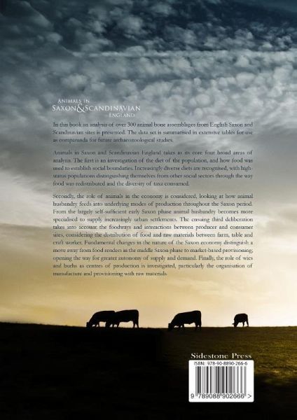 In this book an analysis of over 300 animal bone assemblages from English Saxon and Scandinavian sites is presented. The data set is summarised in extensive tables for use as comparanda for future archaeozoological studies. Animals in Saxon and Scandinavian England takes as its core four broad areas of analysis. The first is an investigation of the diet of the population, and how food was used to establish social boundaries. Increasingly diverse diets are recognised, with high-status populations distinguishing themselves from other social sectors through the way food was redistributed and the diversity of taxa consumed. Secondly, the role of animals in the economy is considered, looking at how animal husbandry feeds into underlying modes of production throughout the Saxon period. From the largely self-sufficient early Saxon phase animal husbandry becomes more specialised to supply increasingly urban settlements. The ensuing third deliberation takes into account the foodways and interactions between producer and consumer sites, considering the distribution of food and raw materials between farm, table and craft worker. Fundamental changes in the nature of the Saxon economy distinguish a move away from food renders in the middle Saxon phase to market-based provisioning; opening the way for greater autonomy of supply and demand. Finally, the role of wics and burhs as centres of production is investigated, particularly the organisation of manufacture and provisioning with raw materials.