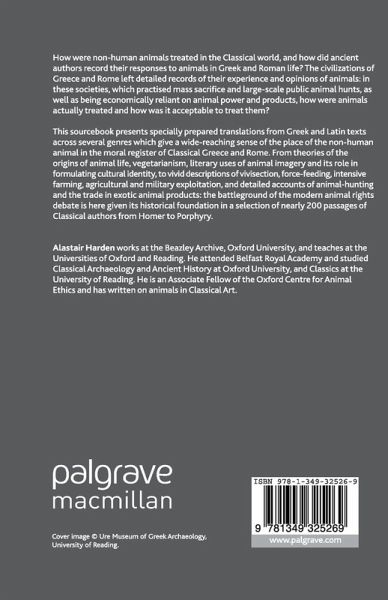 List of IllustrationsPreface Series Editors' Preface Introduction PART I: DEFINING 'ANIMAL': ANCIENT WRITERS ON ANIMAL NATURE 1. Animal Origins, Minds and Capacities 2. Animal Justice and Morals 3. The Ancient Idea of Vegetarianism 4. Observing and Imagining Animal Behaviour 5. Animals and Cultural Identity 6. Bucolic Ideals and The Golden Age PART II: THE TREATMENT OF ANIMALS IN THE CLASSICAL WORLD 7. Animal Study and Experimentation 8. Animals and Warfare 9. The Economic Animal: Farming, Food and Trade 10. Sacrifice and Sacred Animals 11. Hunting Animals 12. Animals and Public Entertainment Notes Bibliography Index Locorum General Index