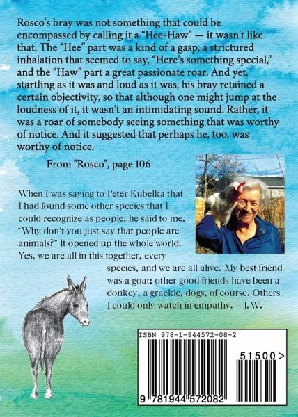 Blending memoir and nature writing, Jane Wodening is best loved for her animal stories, and for her ability to re-tell folk tales from denizens of the Rocky Mountains. Both of these are in Animals I Have Neglected to Mention. From Wagsy, a neglected dog whom only Jane could befriend, to Rosco, the highly intelligent donkey, to a runty rooster named Mighty Mouse, Jane reveals her world, full of charm, heartache and joy. You'll be glad Jane remembered this batch of animal friends.