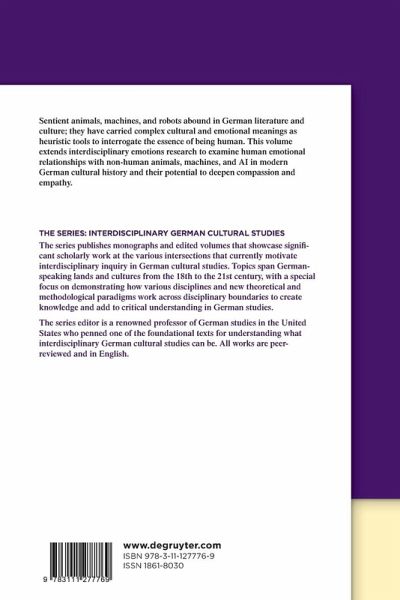 Sentient animals, machines, and robots abound in German literature and culture, but there has been surprisingly limited scholarship on non-human life forms in German studies. This volume extends interdisciplinary research in emotion studies to examine non-humans and the affective relationships between humans and non-humans in modern German cultural history. In recent years, fascination with emotions, developments in robotics, and the burgeoning of animal studies in and beyond the academy have given rise to questions about the nature of humanity. Using sources from the life sciences, literature, visual art, poetry, philosophy, and photography, this collection interrogates not animal or machine emotions per se, but rather uses animals and machines as lenses through which to investigate human emotions and the affective entanglements between humans and non-humans. The COVID-19 pandemic made us more keenly aware of the importance of both animals and new technologies in our daily lives, and this volume ultimately sheds light on the centrality of non-humans in the human emotional world and the possibilities that relationships with non-humans offer for enriching that world.