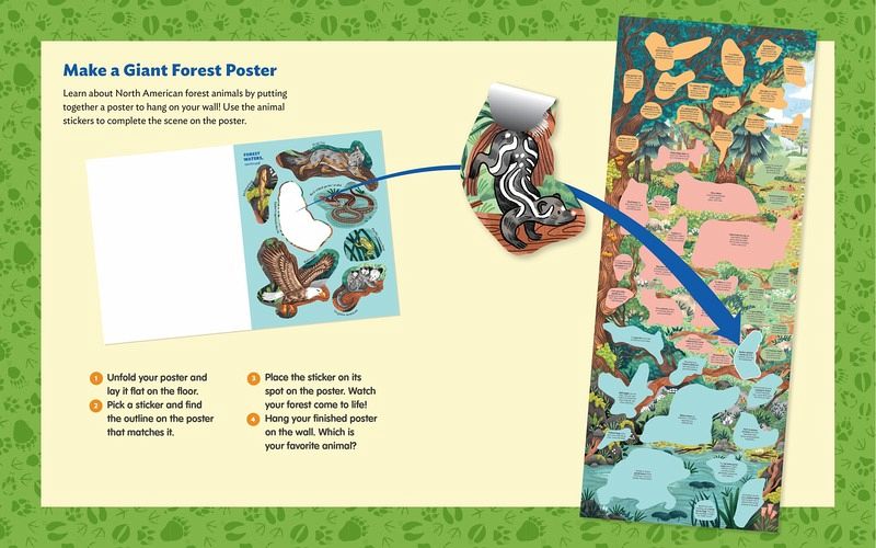 Find tons of animal stickers and mess-free fun with this one-of-a-kind activity book and poster! Fill in the woodland scene with forest animal stickers and learn about moose, skunks, foxes, eagles, and more amazing animals along the way. When you've finished the project, you'll have a beautiful piece of art to display. How it works: * Unfold the poster, which has spots outlined for each sticker. * Complete the forest poster by putting all 50 animal stickers in the right spots. * Discover fascinating facts about each animal as you go. * Hang the finished forest poster on your wall!