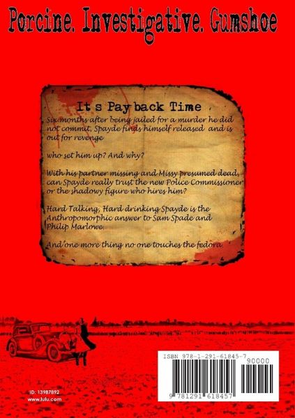 Six months after being jailed for a murder he did not commit, Spayde finds himself released and is out for revenge who set him up? And why? With his partner missing and Missy presumed dead, can Spayde really trust the new Police Commissioner or the shadowy figure who hires him? Hard Talking, Hard drinking Spayde is the Anthropomorphic answer to Sam Spade and Philip Marlowe. And one more thing no one touches the fedora.