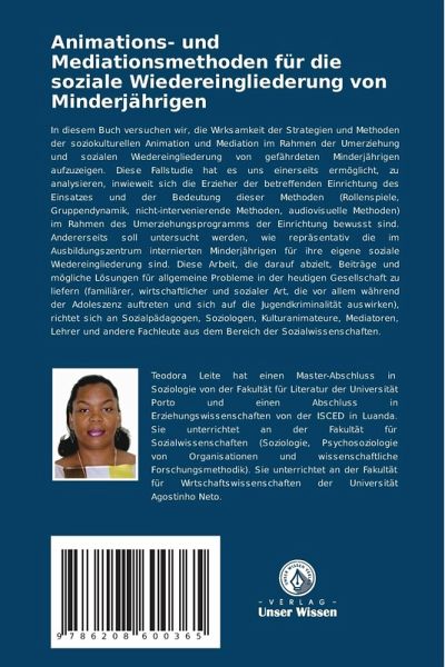 In diesem Buch versuchen wir, die Wirksamkeit der Strategien und Methoden der soziokulturellen Animation und Mediation im Rahmen der Umerziehung und sozialen Wiedereingliederung von gefährdeten Minderjährigen aufzuzeigen. Diese Fallstudie hat es uns einerseits ermöglicht, zu analysieren, inwieweit sich die Erzieher der betreffenden Einrichtung des Einsatzes und der Bedeutung dieser Methoden (Rollenspiele, Gruppendynamik, nicht-intervenierende Methoden, audiovisuelle Methoden) im Rahmen des Umerziehungsprogramms der Einrichtung bewusst sind. Andererseits soll untersucht werden, wie repräsentativ die im Ausbildungszentrum internierten Minderjährigen für ihre eigene soziale Wiedereingliederung sind. Diese Arbeit, die darauf abzielt, Beiträge und mögliche Lösungen für allgemeine Probleme in der heutigen Gesellschaft zu liefern (familiärer, wirtschaftlicher und sozialer Art, die vor allem während der Adoleszenz auftreten und sich auf die Jugendkriminalität auswirken), richtet sich an Sozialpädagogen, Soziologen, Kulturanimateure, Mediatoren, Lehrer und andere Fachleute aus dem Bereich der Sozialwissenschaften.