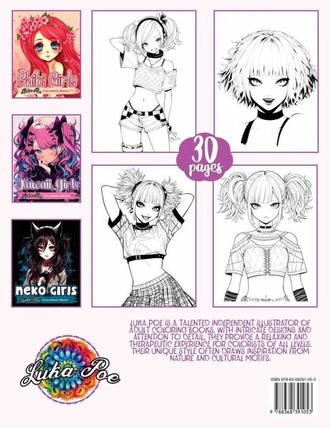 Anime Coloring Book for Adults: Featuring Cute and Unique Manga Characters - A Relaxing Art Collection for Teens, Girls, and Grown-Ups with Beautiful Designs, Cozy Stories, and Stress-Relief Scenes - Perfect Gift for Every Occasion Immerse yourself in a world of creativity, relaxation, and storytelling with this Anime Coloring Book for Adults. Whether you're looking to de-stress, spark your imagination, or find the perfect gift for someone special, this coloring book offers a unique combination of stunning manga illustrations and enchanting stories to enhance your experience. Why This Coloring Book Stands Out:Stunning Manga Characters: Dive into 30 unique and detailed designs, featuring everything from adorable chibi figures to elegant and magical manga characters. Cozy Stories with Each Page: Each illustration comes with a short, heartwarming story that brings the characters to life, offering a creative journey beyond coloring. Stress-Relief and Mindfulness: Designed to help you relax and unwind, this book offers the perfect blend of creativity and therapeutic coloring. Perfect for All Ages: Teens, girls, and adults alike will love the variety of themes, from cute and cozy designs to intricate and detailed scenes. Beautiful for Every Occasion: A great gift for birthdays, Mother's Day, Thanksgiving, Christmas, or any time you want to surprise an anime fan. ¿ Key Features:High-Quality Artwork: Single-sided pages to prevent bleed-through and allow you to color with markers, pencils, or any medium of your choice. Magical Themes and Styles: Enjoy scenes featuring fantasy elements, stylish fashion, charming chibi moments, and beautiful Japanese and gothic-inspired designs. Easy and Engaging: Suitable for beginners and experienced artists alike, with a variety of designs to challenge and inspire. Perfect for Relaxation: Whether you're cuddled up on a rainy day or looking for a quick escape, this book is your go-to for a cozy, creative retreat. Bring Stories to Life with Color! Unleash your creativity as you color in gorgeous anime characters and let the accompanying stories whisk you away into their enchanting world. Perfect for artists, anime enthusiasts, or anyone looking to indulge in a relaxing hobby.