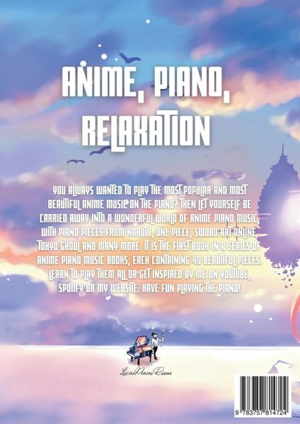 Easy anime piano sheet music books for beginners and advanced. The ideal gift for anyone who plays the piano or wants to learn it.Impress your family and friends with 40 beautiful and relaxing anime piano pieces per book and learn to play them all with pieces from Naruto, One Piece, Sword Art Online, Tokyo Ghoul and many more.Every book in this series of anime piano sheet music books, contains 40 songs from the albums releases of the artist "LucasPianoRoom".Discover a huge sheet music library on www.lucaspianoroom.com, find video tutorials for all pieces from all books on YouTube or just listen to the relaxing music of all works for free on Spotify and Apple Music.Have fun playing the piano!