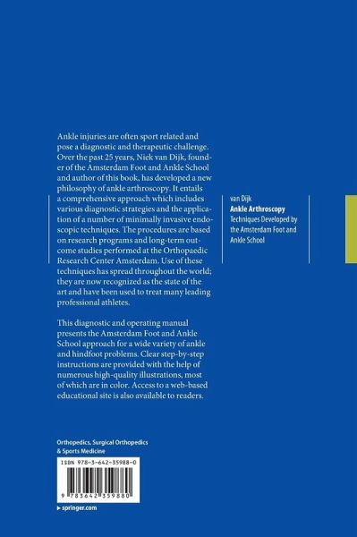 Ankle injuries are often sport related and pose a diagnostic and therapeutic challenge. Over the past 25 years, Niek van Dijk, founder of the Amsterdam Foot and Ankle School and author of this book, has developed a new philosophy of ankle arthroscopy. It entails a comprehensive approach which includes various diagnostic strategies and the application of a number of minimally invasive endoscopic techniques. Use of these techniques has spread throughout the world; they are now recognized as the state of the art and have been used to treat many leading professional athletes. This diagnostic and operating manual presents the Amsterdam Foot and Ankle School approach for a wide variety of ankle and hindfoot problems. Clear step-by-step instructions are provided with the help of numerous high-quality illustrations, most of which are in color. Access to a web-based educational site is also available to readers.