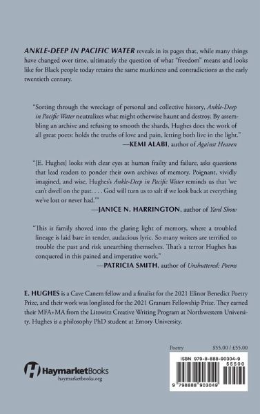 A debut collection of lyric poems interrogating the generational implications of the Great Migration to Northern California. Ankle-Deep in Pacific Water, a debut collection by E. Hughes, marries personal narrative with historical excavation to articulate the intricacies of Black familial love, life, and pain. Tracing the experiences of a southern Black family, their migration to the San Francisco Bay area, and the persistent anti-Blackness there (despite the state’s insistence that it is/was not involved in the US’ projects of imperialism or chattel slavery), Hughes illuminates the…mehr