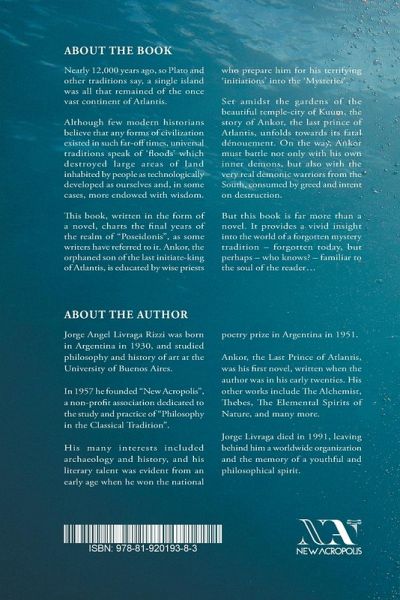Nearly 12,000 years ago, so Plato and other traditions say, a single island was all that remained of the once vast continent of Atlantis. Although few modern historians believe that any forms of civilization existed in such far-off times, universal traditions speak of 'floods' which destroyed large areas of land inhabited by people as technologically developed as ourselves and, in some cases, more endowed with wisdom. This book, written in the form of a novel, charts the final years of the realm of "Poseidonis," as some writers have referred to it. Ankor, the orphaned son of the last initiate-king of Atlantis, is educated by wise priests who prepare him for his terrifying initiations into the 'Mysteries'. Set amidst the gardens of the beautiful temple-city of Kuum, the story of Ankor, the last prince of Atlantis, unfolds towards its fatal dénouement. On the way, Ankor must battle not only with his own inner demons, but also with the very real demonic warriors from the South, consumed by greed and intent on destruction. But this book is far more than a novel. It provides a vivid insight into the world of a forgotten mystery tradition - forgotten today, but perhaps - who knows? - familiar to the soul of the reader...