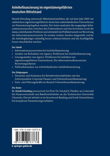 Henrik Döweling untersucht Mittelstandsanleihen, die seit dem Jahr 2009 von zahlreichen (eigentümergeführten) deutschen mittelständischen Unternehmen zur Finanzierung begeben wurden. Der Autor analysiert die ausgeprägte lnformationsasymmetrie zwischen den Unternehmen und den lnvestoren sowie die daraus entstehenden Probleme und entwickelt ein Prüfinstrument zur Bewertung der lnformationsasymmetrie. Es werden weitere Ansätze dargestellt, welche die Anleihegläubiger zukünftig besser schützen können und die Ausfallgefahr besser einschätzbar machen.