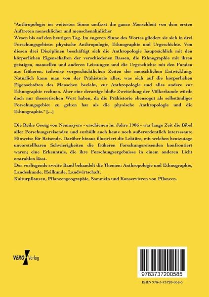 Die Reihe Georg von Neumayers - erschienen im Jahre 1906 - war lange Zeit die Bibel aller Forschungsreisenden und enthüllt auch heute noch außerordentlich interessante Hinweise für Reisende. Darüber hinaus illustriert die Lektüre, mit welchen heutzutage unvorstellbaren Schwierigkeiten die früheren Forschungsreisenden konfrontiert waren; eine Erkenntnis, die ihre Forschungsergebnisse in einem anderen Licht erstrahlen lässt.