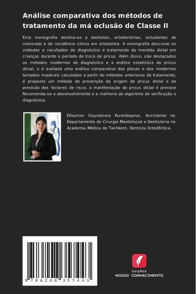 Esta monografia destina-se a dentistas, ortodontistas, estudantes de mestrado e de residência clínica em ortodontia. A monografia descreve os métodos e resultados do diagnóstico e tratamento da mordida distal em crianças durante o período de troca de pricus. Além disso, são destacados os métodos modernos de diagnóstico e a análise estatística do pricus distal, e é avaliada uma análise comparativa das placas e dos modernos tampões myobrais calculados a partir de métodos anteriores de tratamento, é proposto um método de prevenção da origem do pricus distal e de previsão dos factores de risco, a manifestação do pricus distal é precoce Recomenda-se o desenvolvimento e a melhoria do algoritmo de verificação e diagnóstico.