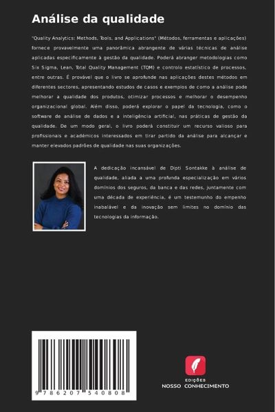 "Quality Analytics: Methods, Tools, and Applications" (Métodos, ferramentas e aplicações) fornece provavelmente uma panorâmica abrangente de várias técnicas de análise aplicadas especificamente à gestão da qualidade. Poderá abranger metodologias como Six Sigma, Lean, Total Quality Management (TQM) e controlo estatístico de processos, entre outras. É provável que o livro se aprofunde nas aplicações destes métodos em diferentes sectores, apresentando estudos de casos e exemplos de como a análise pode melhorar a qualidade dos produtos, otimizar processos e melhorar o desempenho organizacional global. Além disso, poderá explorar o papel da tecnologia, como o software de análise de dados e a inteligência artificial, nas práticas de gestão da qualidade. De um modo geral, o livro poderá constituir um recurso valioso para profissionais e académicos interessados em tirar partido da análise para alcançar e manter elevados padrões de qualidade nas suas organizações.