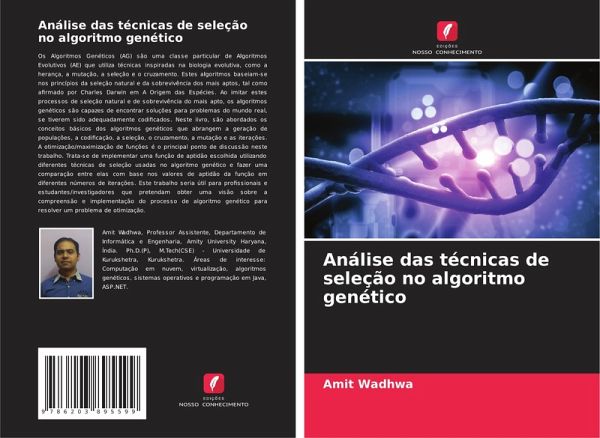 Os Algoritmos Genéticos (AG) são uma classe particular de Algoritmos Evolutivos (AE) que utiliza técnicas inspiradas na biologia evolutiva, como a herança, a mutação, a seleção e o cruzamento. Estes algoritmos baseiam-se nos princípios da seleção natural e da sobrevivência dos mais aptos, tal como afirmado por Charles Darwin em A Origem das Espécies. Ao imitar estes processos de seleção natural e de sobrevivência do mais apto, os algoritmos genéticos são capazes de encontrar soluções para problemas do mundo real, se tiverem sido adequadamente codificados. Neste livro, são abordados os conceitos básicos dos algoritmos genéticos que abrangem a geração de populações, a codificação, a seleção, o cruzamento, a mutação e as iterações. A otimização/maximização de funções é o principal ponto de discussão neste trabalho. Trata-se de implementar uma função de aptidão escolhida utilizando diferentes técnicas de seleção usadas no algoritmo genético e fazer uma comparação entre elas com base nos valores de aptidão da função em diferentes números de iterações. Este trabalho seria útil para profissionais e estudantes/investigadores que pretendam obter uma visão sobre a compreensão e implementação do processo de algoritmo genético para resolver um problema de otimização.