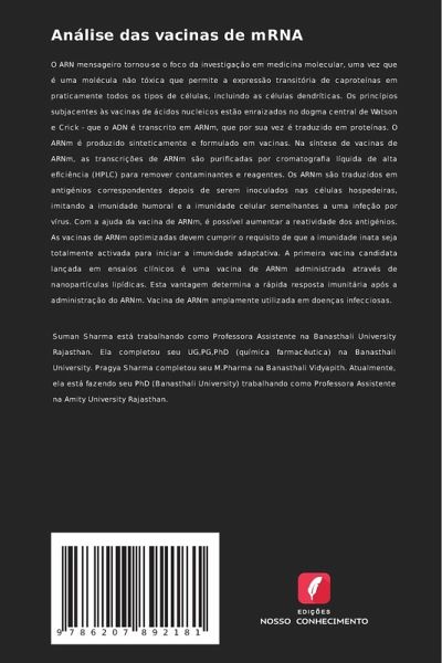 O ARN mensageiro tornou-se o foco da investigação em medicina molecular, uma vez que é uma molécula não tóxica que permite a expressão transitória de caproteínas em praticamente todos os tipos de células, incluindo as células dendríticas. Os princípios subjacentes às vacinas de ácidos nucleicos estão enraizados no dogma central de Watson e Crick - que o ADN é transcrito em ARNm, que por sua vez é traduzido em proteínas. O ARNm é produzido sinteticamente e formulado em vacinas. Na síntese de vacinas de ARNm, as transcrições de ARNm são purificadas por cromatografia líquida de alta eficiência (HPLC) para remover contaminantes e reagentes. Os ARNm são traduzidos em antigénios correspondentes depois de serem inoculados nas células hospedeiras, imitando a imunidade humoral e a imunidade celular semelhantes a uma infeção por vírus. Com a ajuda da vacina de ARNm, é possível aumentar a reatividade dos antigénios. As vacinas de ARNm optimizadas devem cumprir o requisito de que a imunidade inata seja totalmente activada para iniciar a imunidade adaptativa. A primeira vacina candidata lançada em ensaios clínicos é uma vacina de ARNm administrada através de nanopartículas lipídicas. Esta vantagem determina a rápida resposta imunitária após a administração do ARNm. Vacina de ARNm amplamente utilizada em doenças infecciosas.